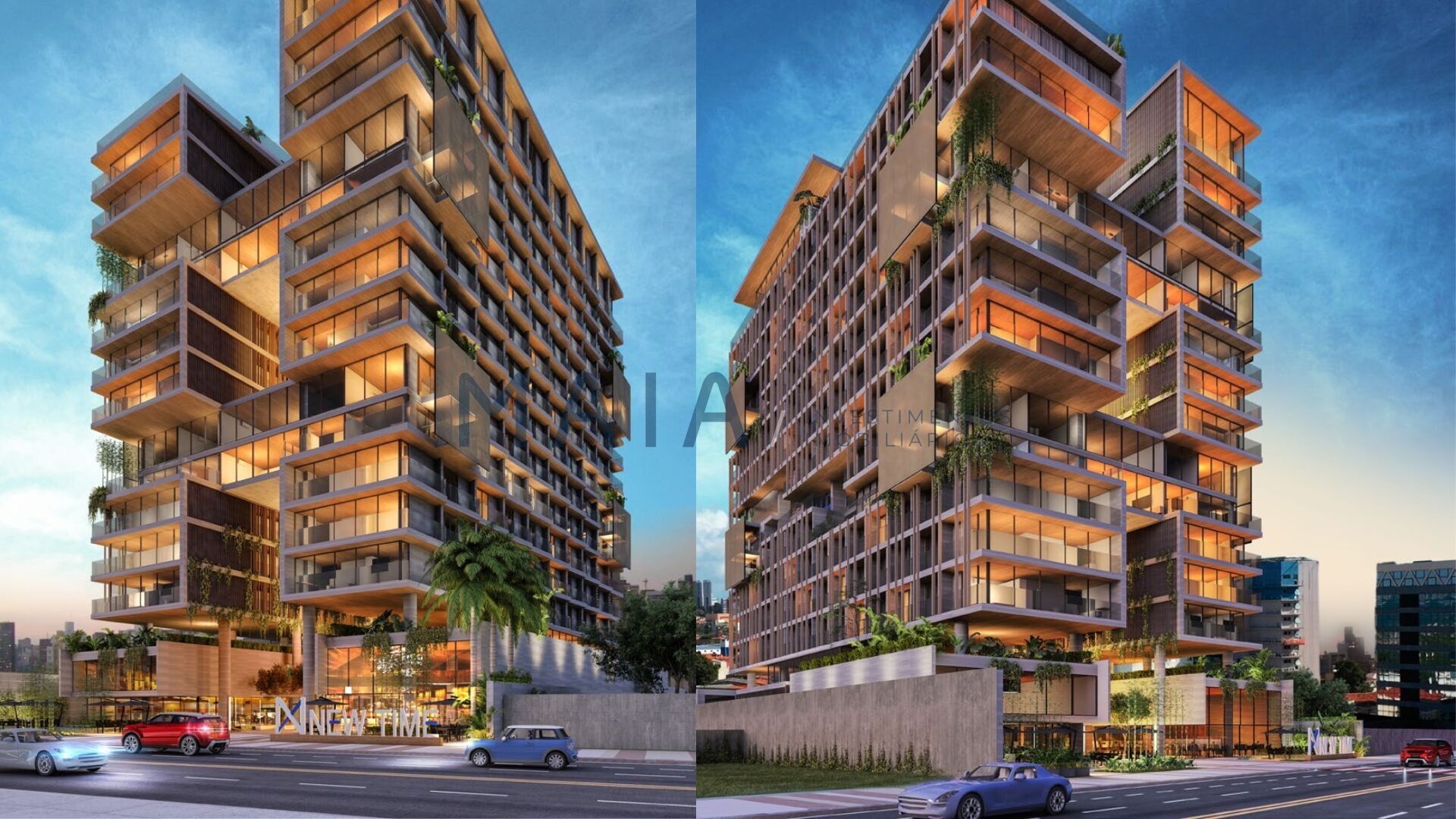 “O Desenho é o grande diferencial do projeto. E a conexão está sempre presente. Pavimentos alternados com áreas de convívio entre eles propõem uma nova relação de uso e contemplação do entorno. O design incorporado traz para o NEW TIME características únicas.”